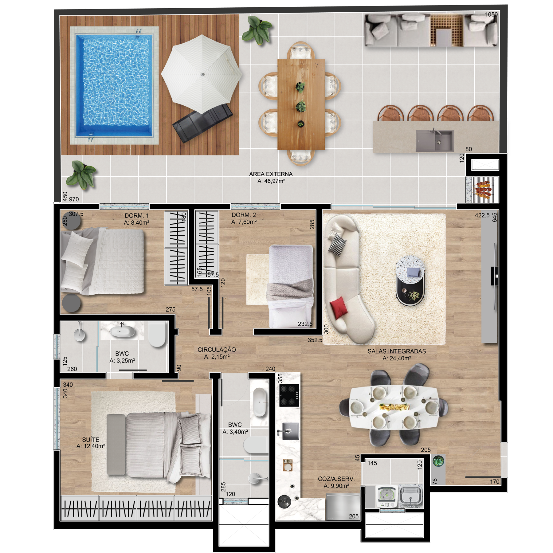 Completo em vários aspectos, conta com uma estrutura excepcional para os encontros em família e amigos. Contando com áreas de convivência amplas e charmosas que começam desde a entrada do prédio e se estendem a todos os espaços comuns.