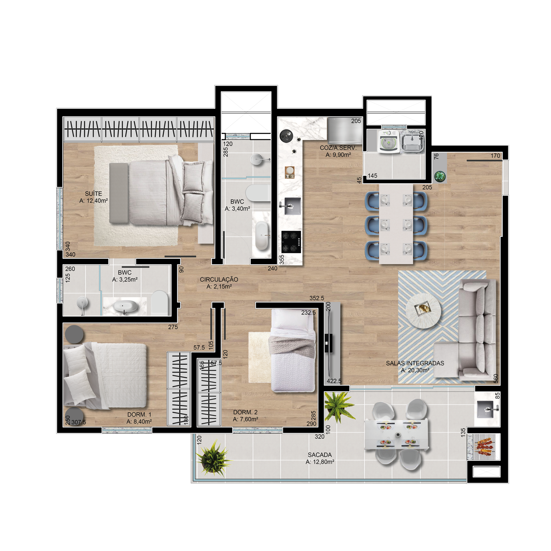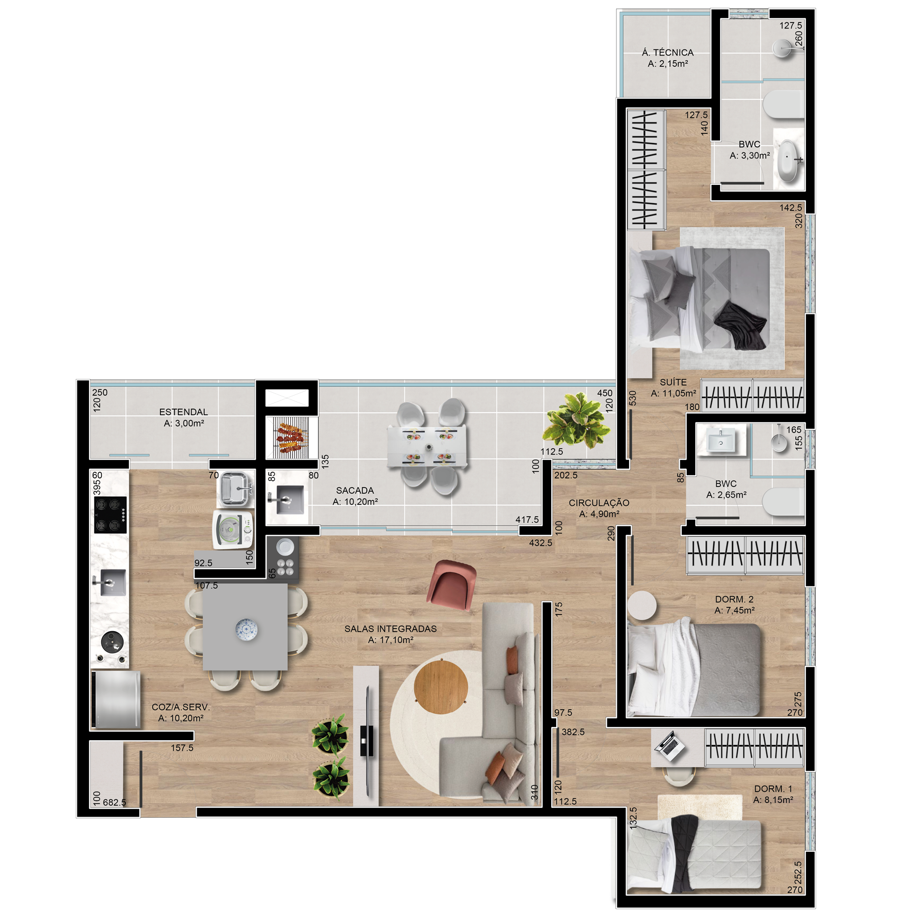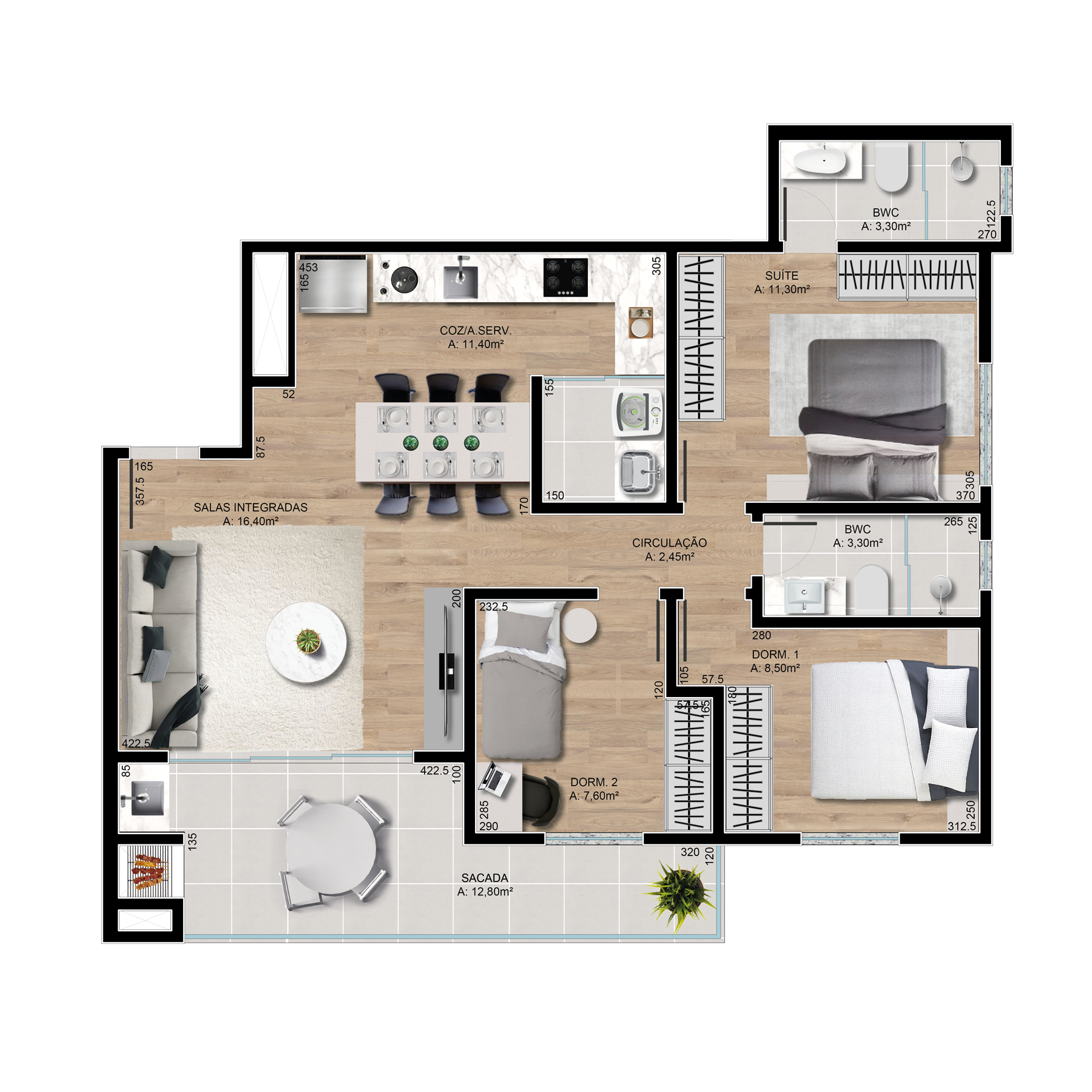 Projetadas para trazer amplitude, funcionalidade e conforto, as plantas do GUARÁ possuem áreas sociais integradas e sacadas amplas. Apartamentos com acabamento de alta qualidade e bom gosto, uma escolha certa para aqueles que valorizam o que mais importa: estar ao lado de quem se ama.